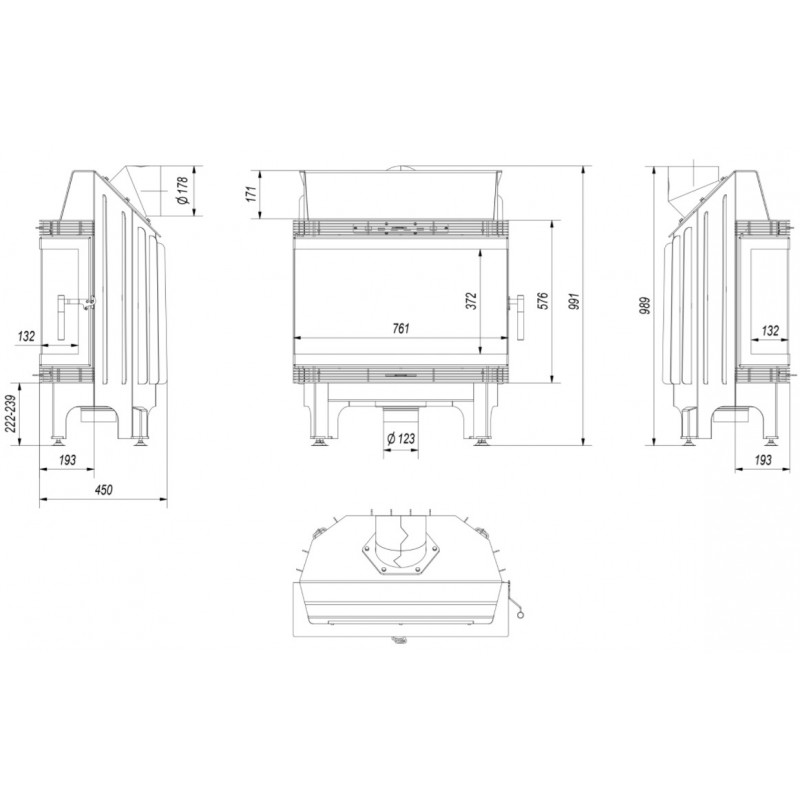 Wbudowany dolot powietrza fi 125, który zapewnia doprowadzenie świeżego powietrza do paleniska z zewnątrz budynku, co wpływa na lepsze spalanie.