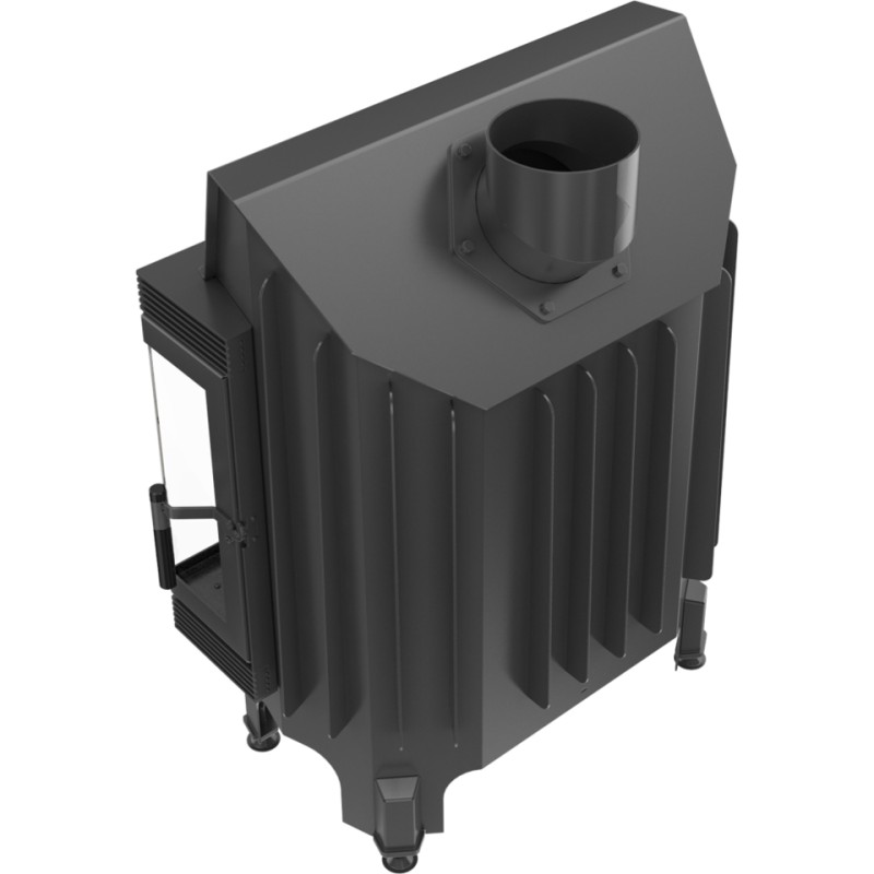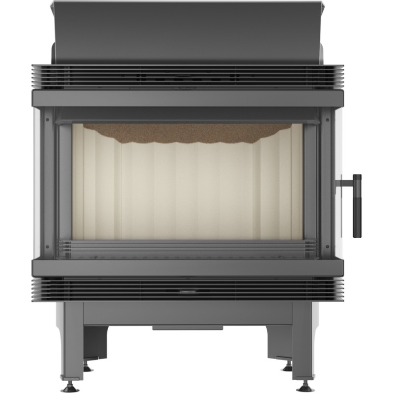 Wkład kominkowy z szybami zestawionymi ze sobą pod kątem prostym (szyby łączone bez szprosa).