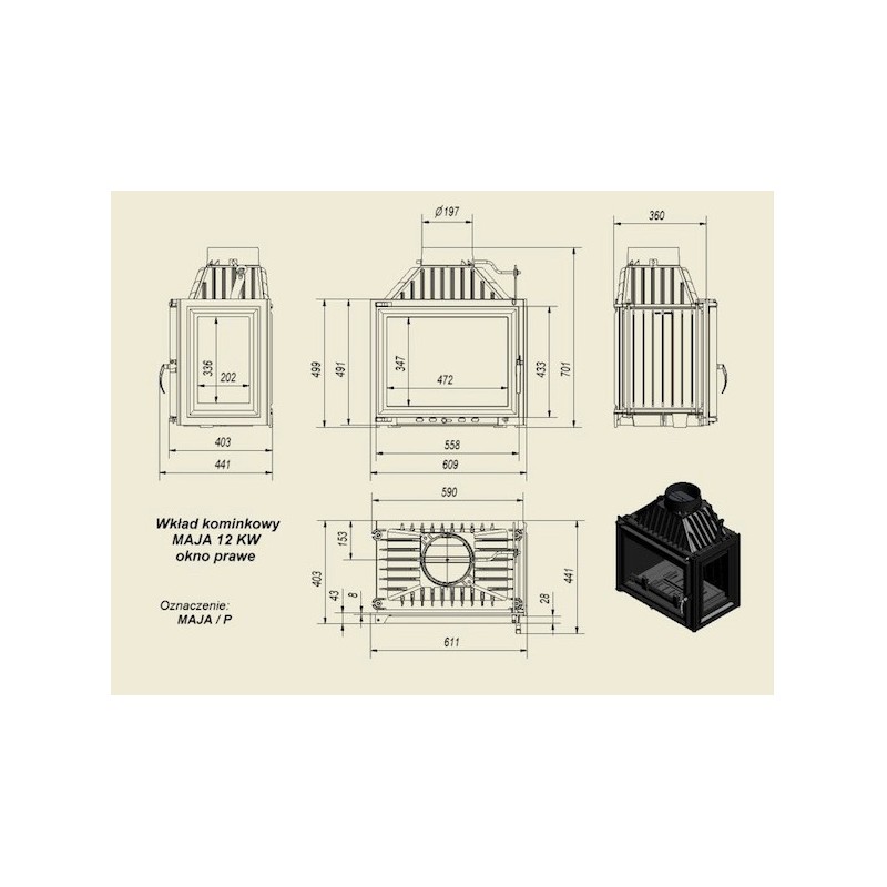 Klasyczny front wkładu wyposażony w ceramikę żaroodporną wytrzymująca temperaturę do 800°C.