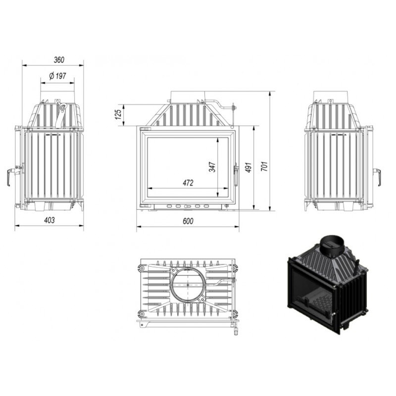 Maksymalne wykorzystanie ciepła dzięki gęsto rozmieszczonym radiatorom oraz ściankom paleniska wykonanym z wysokiej jakości żeliwa o grubości 8 mm.