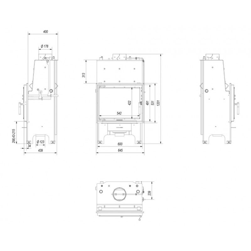 Dwuszybrowa regulacja wylotu spalin: szyber górny, który pozwala na regulację ciągu komina; szyber dolny, pozwala na regulację ciągu komina, przełączający wkład ze stanu rozpalania w stan pracy.