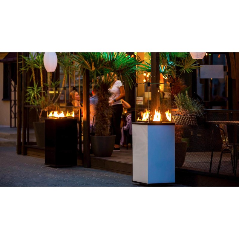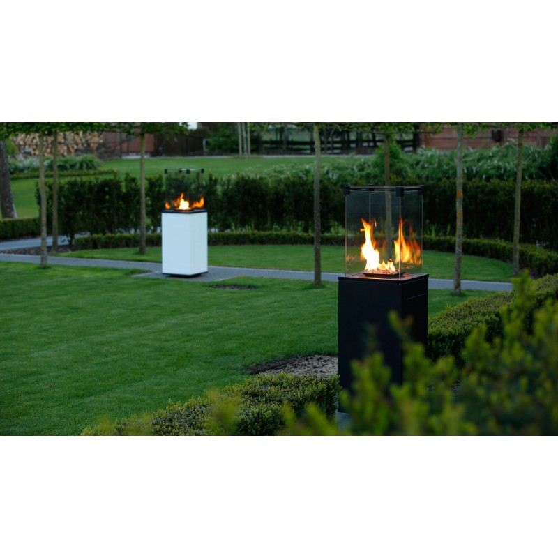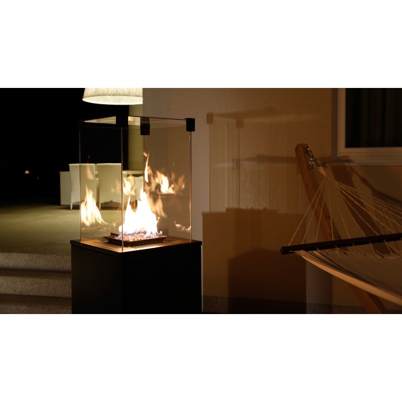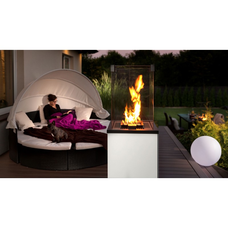 PATIO MINI zasilane jest płynnym gazem z butli, która ukryta jest w obudowie. Płomienie są zamknięte w szklanej komorze, która osłania nas przed bezpośrednim kontaktem z ogniem. Pozwala to na podziwianie gry płomieni będących pod całkowitą kontrolą.