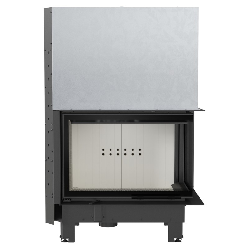 Wkład kominkowy z dwoma szybami zestawionymi ze sobą pod kątem prostym (szyby łączone bez szprosa).