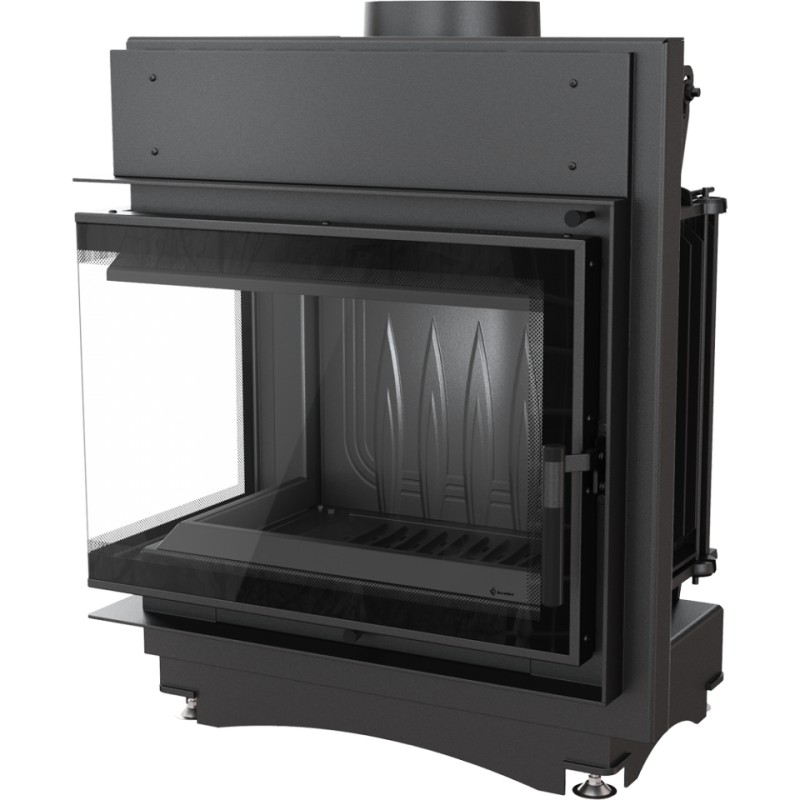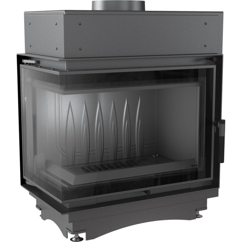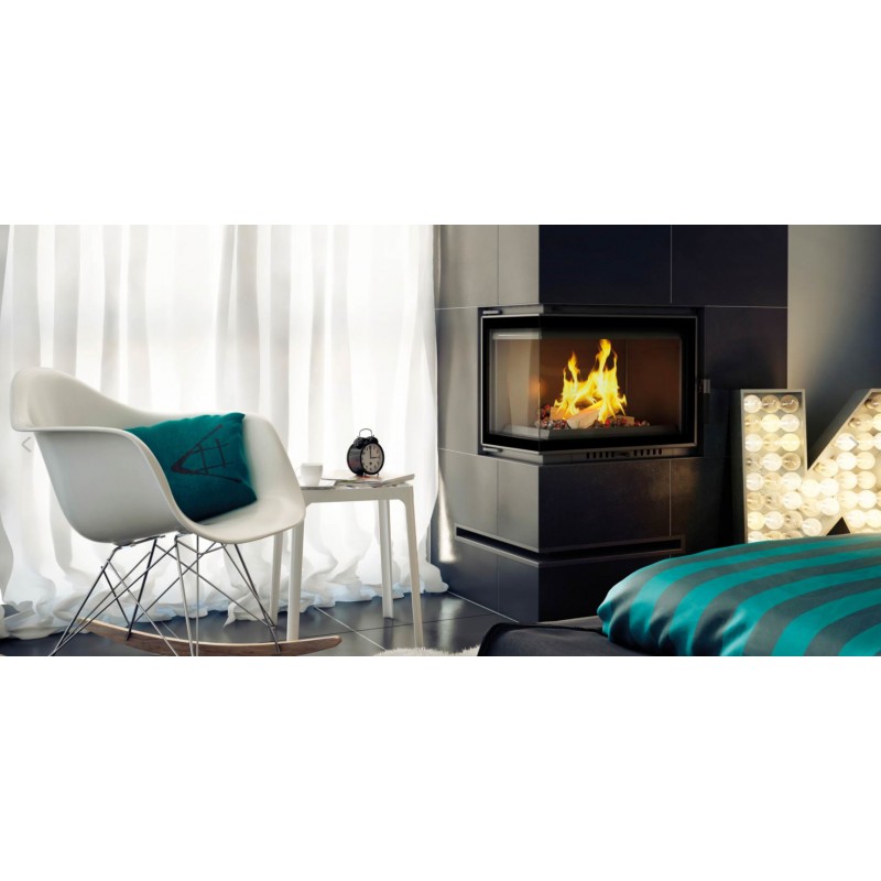 Wkład kominkowy z dwoma szybami zestawionymi ze sobą pod kątem prostym (szyby łączone bez szprosa).