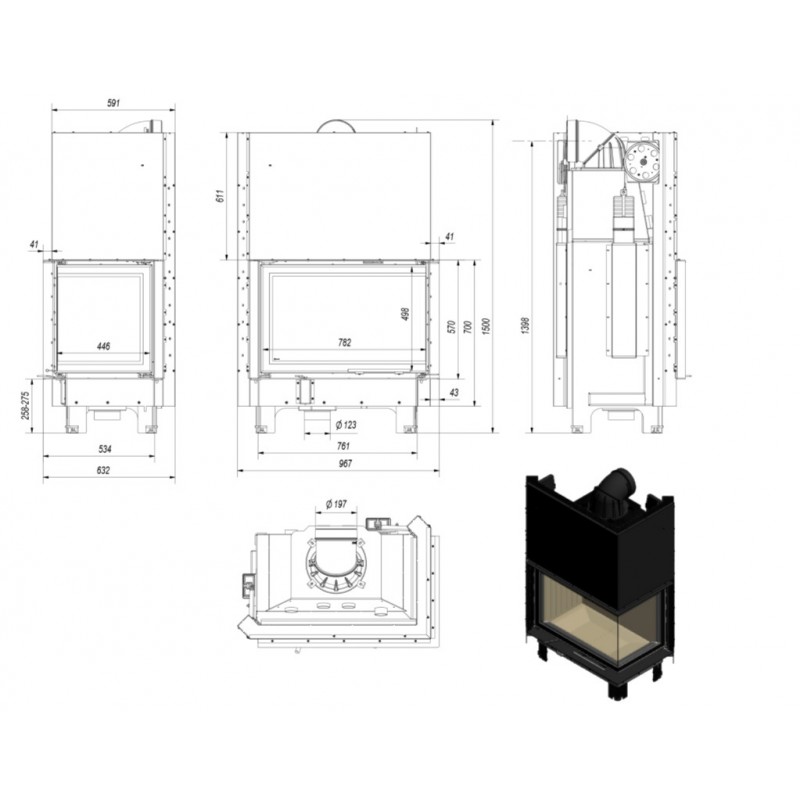 Wkład bezrusztowy - dopalanie na popiele, co oznacza, że opał wypala się na drobny popiół, którego pozostaje minimalna ilość. Uzyskana w ten sposób energia cieplna z drewna zostaje maksymalnie wykorzystana. Płyta dolna wkładu znacznie obniżona w stosunku do drzwi.