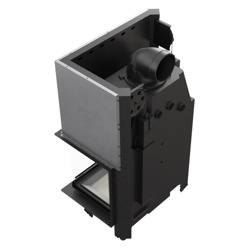 Potrójny system dopowietrzenia komory spalania: powietrze pierwotne - skierowane jest na płytę, na której odbywa się spalanie; powietrze wtórne dostarczane jest otworami w tylnej ścianie. Dodatkowo we wkładzie zastosowany jest system czystej szyby (kurtyna powietrza).