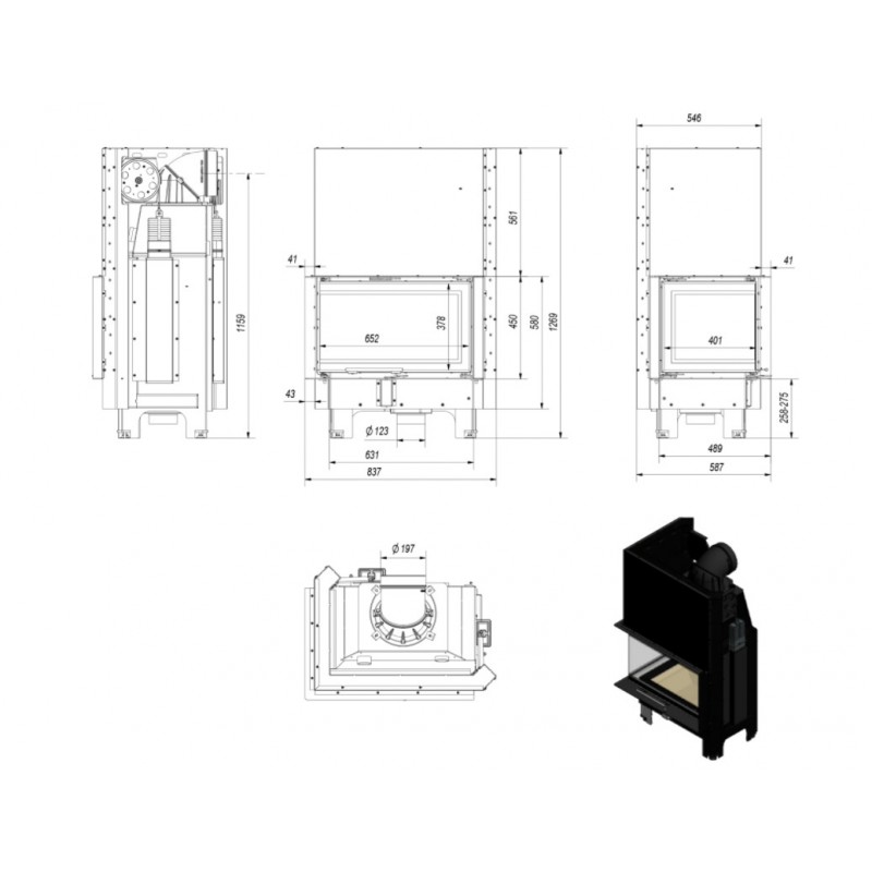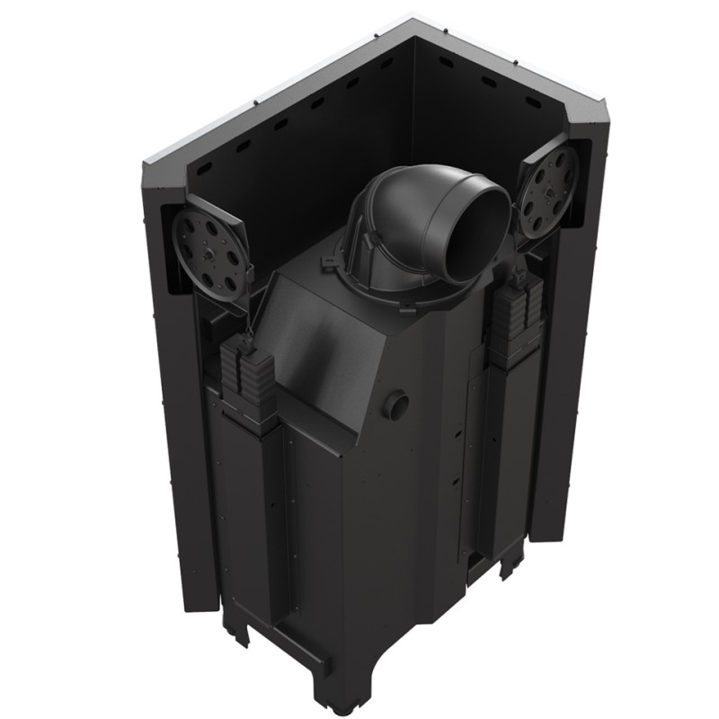 Potrójny system dopowietrzenia komory spalania: powietrze pierwotne - skierowane jest na płytę, na której odbywa się spalanie; powietrze wtórne dostarczane jest otworami w tylnej ścianie. Dodatkowo we wkładzie zastosowany jest system czystej szyby (kurtyna powietrza).