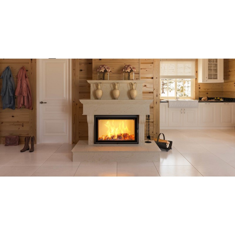 Potrójny system dopowietrzenia komory spalania: powietrze pierwotne - doprowadzone pod ruszt; powietrze wtórne dostarczane jest otworami w tylnej ścianie. Dodatkowo we wkładzie zastosowany jest system czystej szyby (kurtyna powietrza).
