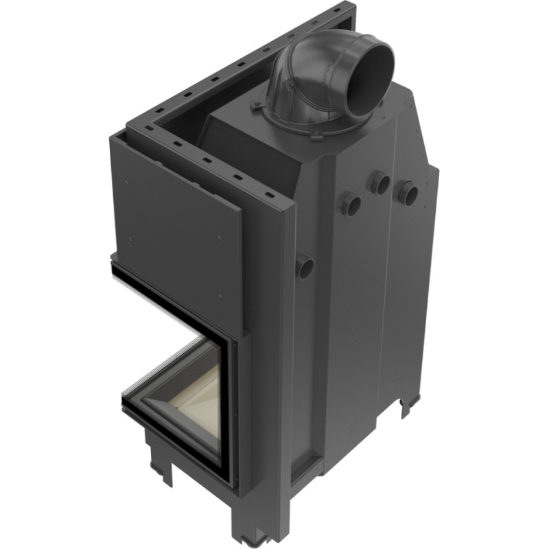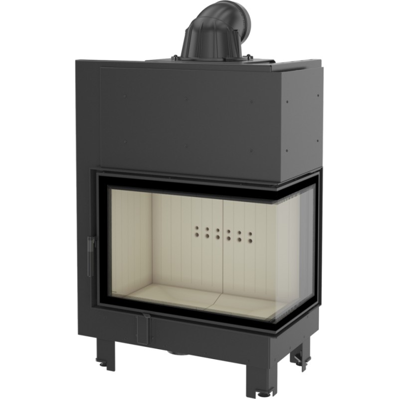 Wkład kominkowy z dwoma szybami zestawionymi ze sobą pod kątem prostym (szyby łączone bez szprosa).