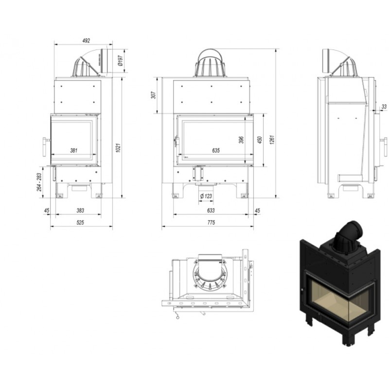 Potrójny system dopowietrzenia komory spalania: powietrze pierwotne - skierowane jest na płytę, na której odbywa się spalanie; powietrze wtórne dostarczane jest otworami w tylnej ścianie. Dodatkowo we wkładzie zastosowany jest system czystej szyby (kurtyna powietrza).