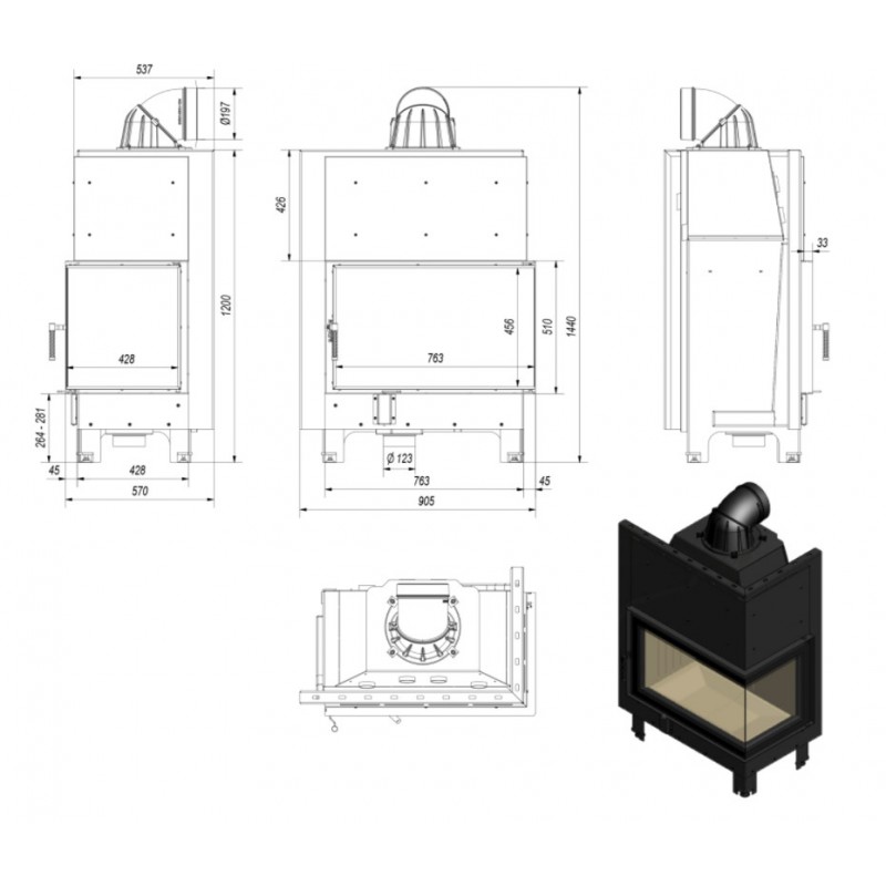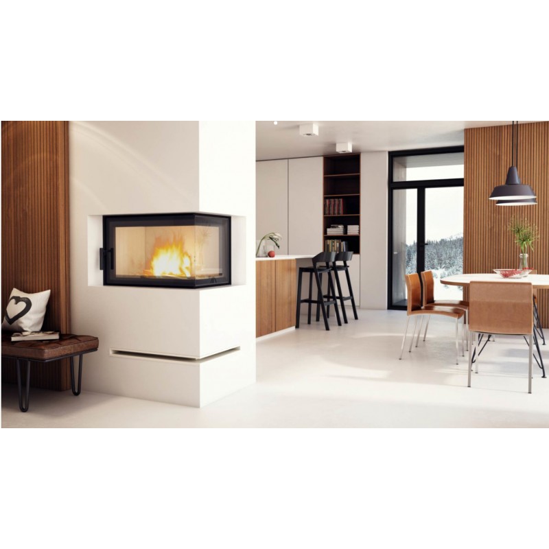 Potrójny system dopowietrzenia komory spalania: powietrze pierwotne - skierowane jest na płytę, na której odbywa się spalanie; powietrze wtórne dostarczane jest otworami w tylnej ścianie. Dodatkowo we wkładzie zastosowany jest system czystej szyby (kurtyna powietrza).