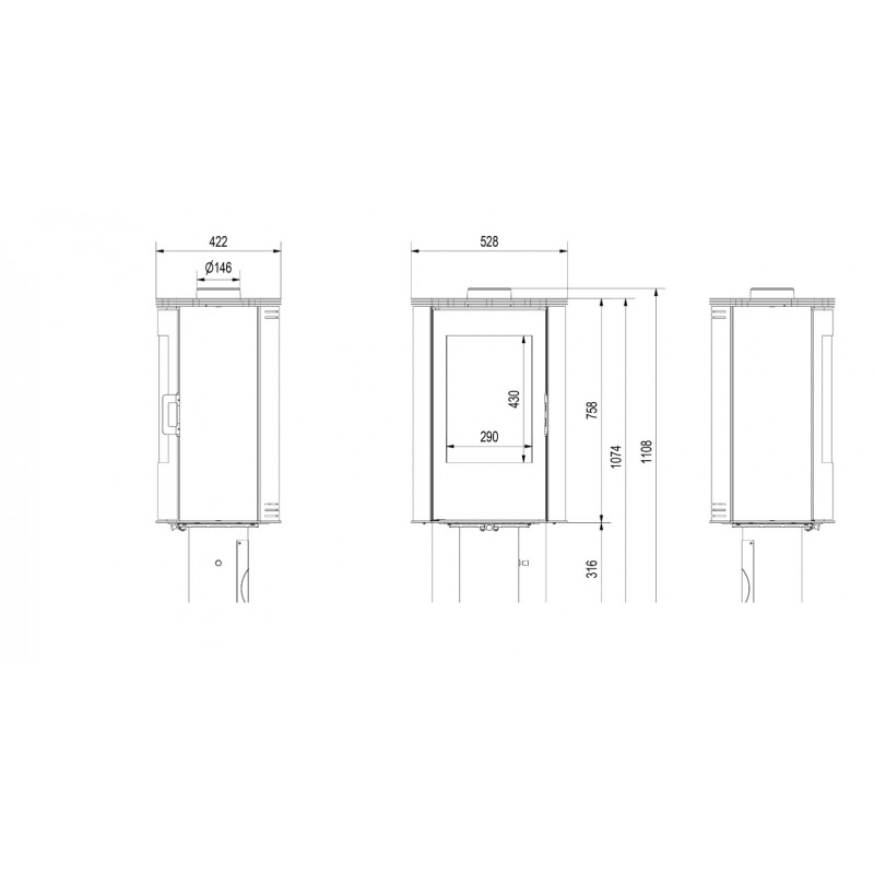 Wyjmowany żeliwny ruszt i popielnik ułatwiają utrzymanie pieca w czystości.