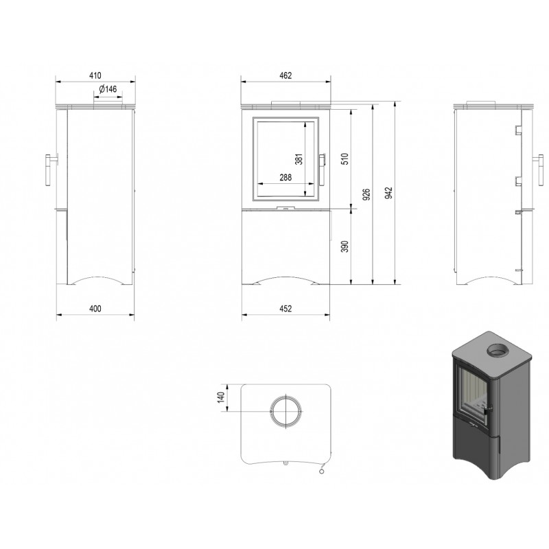 Możliwość zastosowania w różnych warunkach montażowych, dzięki regulowanemu wylotowi spalin: z tyłu lub na górze pieca (przy montażu wylotu z tyłu pieca wymagany jest zakup zaślepki płyty górnej).