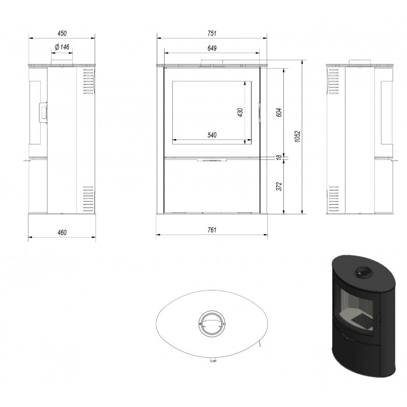 Możliwość zastosowania w różnych warunkach montażowych, dzięki regulowanemu wylotowi spalin: z tyłu lub na górze pieca (przy montażu wylotu z tyłu pieca wymagany jest zakup zaślepki płyty górnej).
