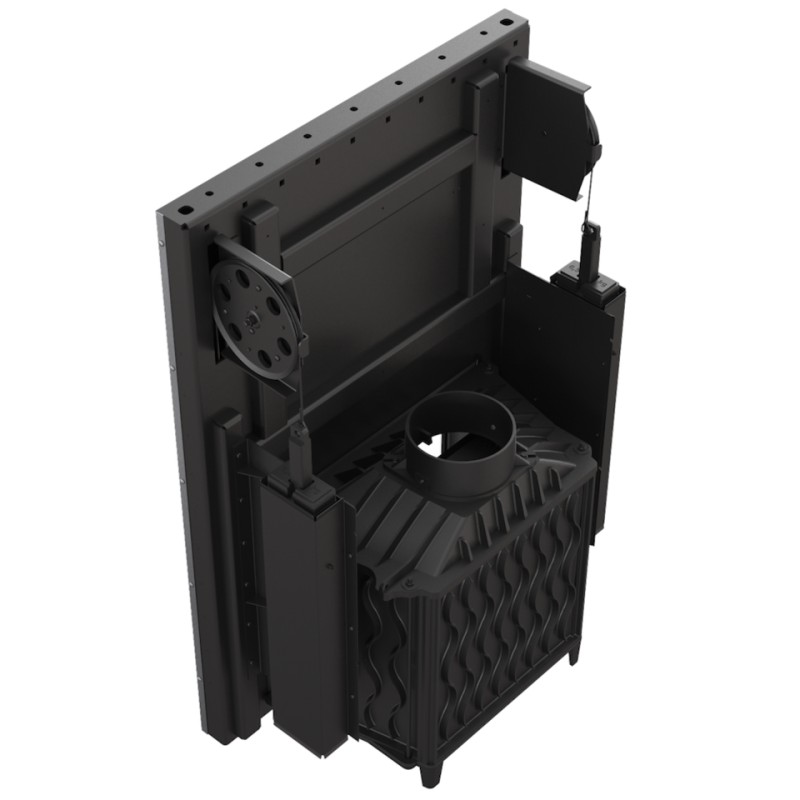 Podwójny system otwierania drzwi do góry (GILOTYNA) i do boku. Podnoszone i opuszczane drzwi ułatwiają załadunek drewna, a mechanizm umożliwiający boczne otwarcie pozwoli na sprawniejsze czyszczenie szyby.