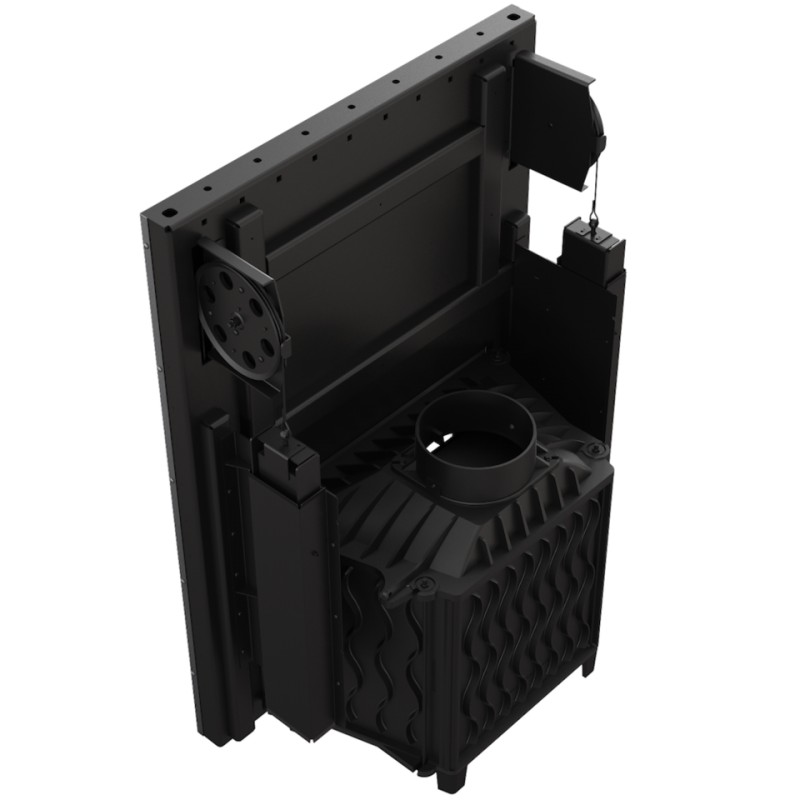 Podwójny system otwierania drzwi do góry (GILOTYNA) i do boku. Podnoszone i opuszczane drzwi ułatwiają załadunek drewna, a mechanizm umożliwiający boczne otwarcie pozwoli na sprawniejsze czyszczenie szyby.
