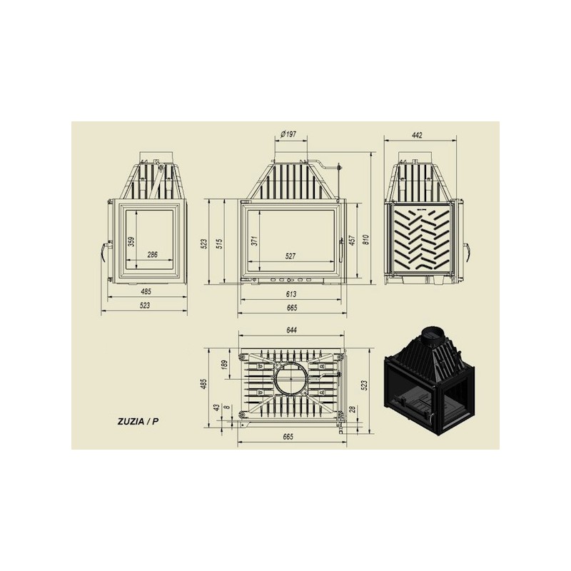 Klasyczny front wkładu wyposażony w ceramikę żaroodporną wytrzymująca temperaturę do 800°C.