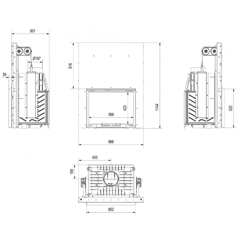 Zwiększona wydajność pracy wkładu poprzez manualną regulację ciągu komina przy użyciu wbudowanego szybra.