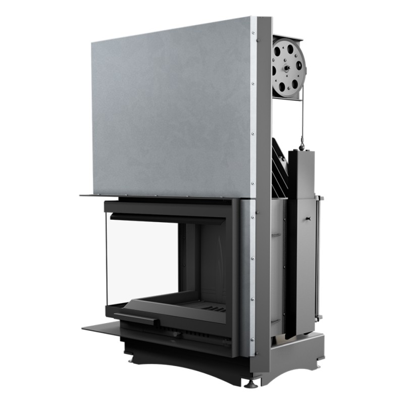 Podwójny system otwierania drzwi do góry (GILOTYNA) i do boku. Podnoszone i opuszczane drzwi ułatwiają załadunek drewna, a mechanizm umożliwiający boczne otwarcie pozwoli na sprawniejsze czyszczenie szyby.