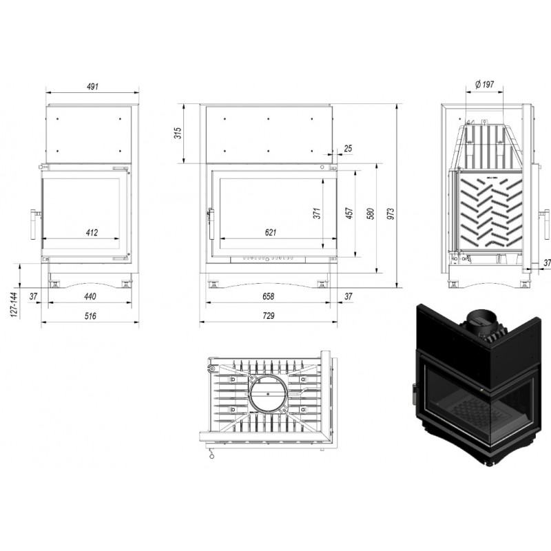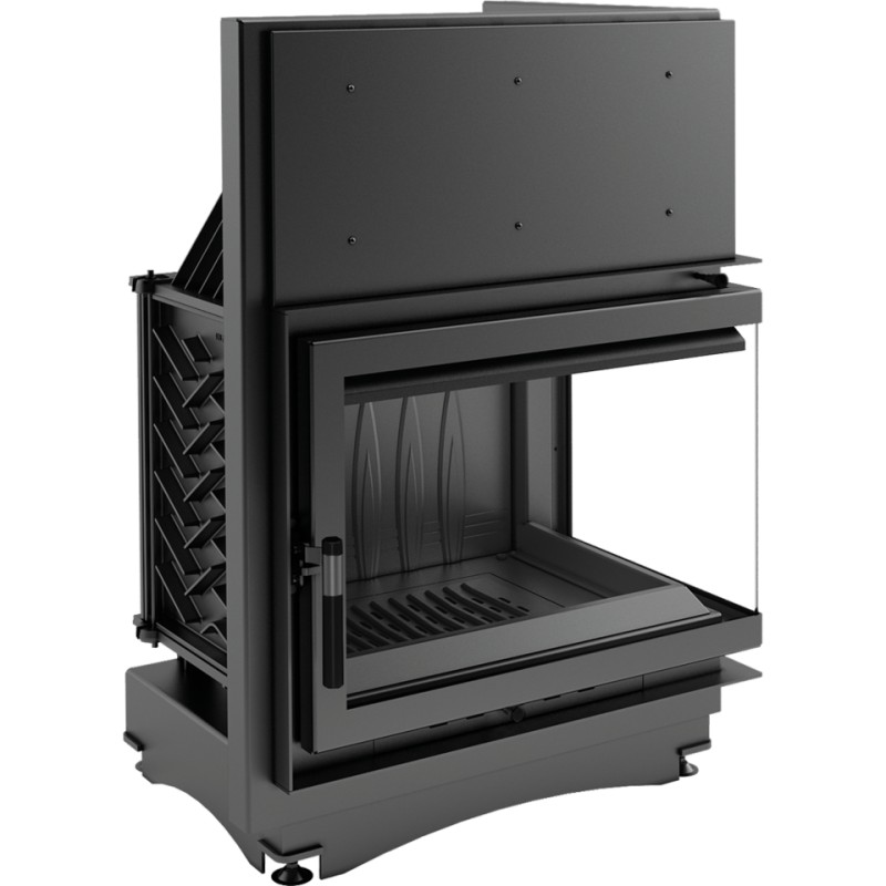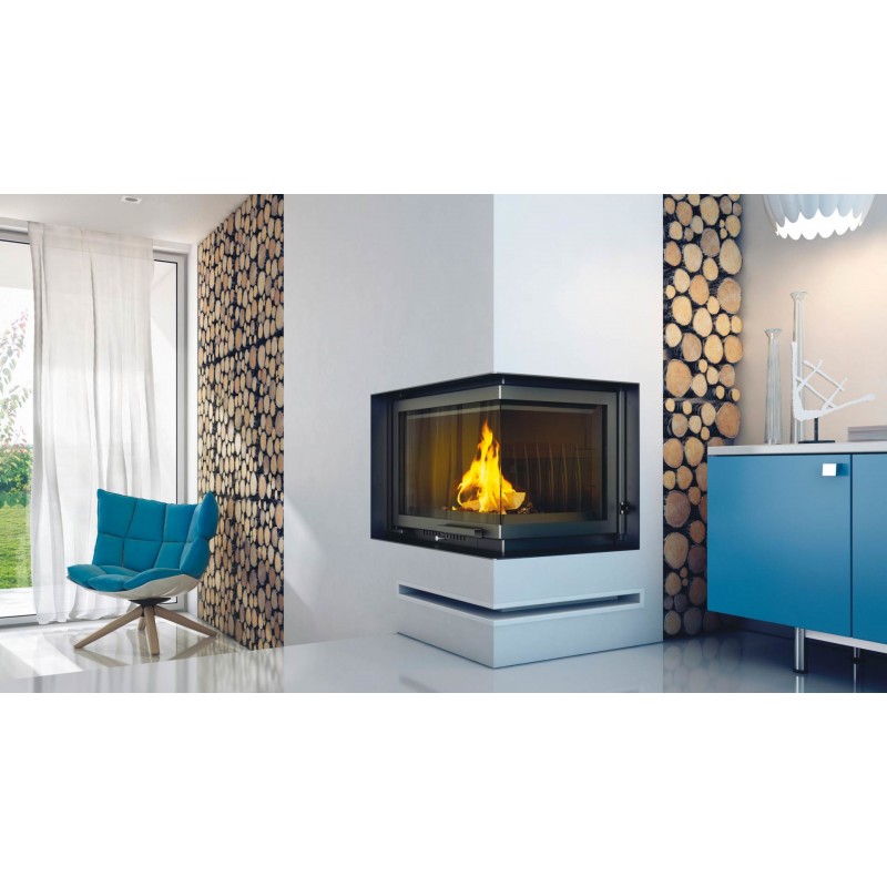 Wkład kominkowy z dwoma szybami zestawionymi ze sobą pod kątem prostym (szyby łączone bez szprosa).