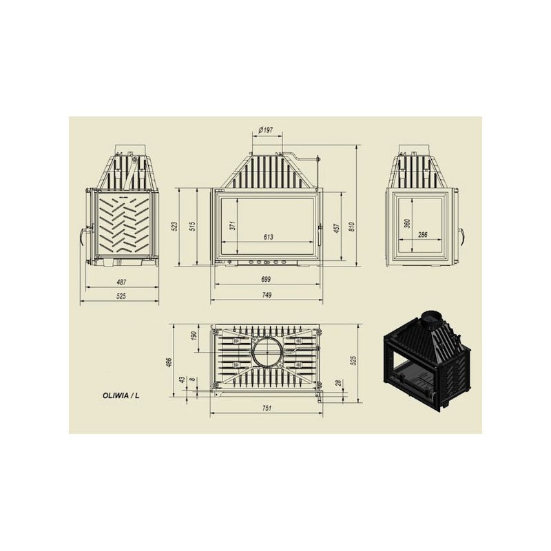 Klasyczny front wkładu wyposażony w ceramikę żaroodporną wytrzymująca temperaturę do 800°C.
