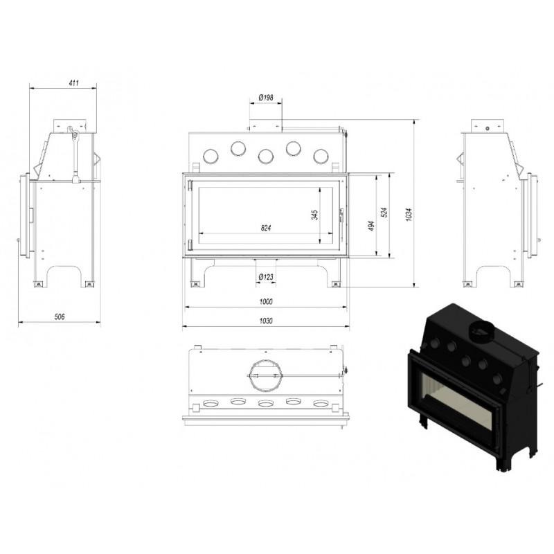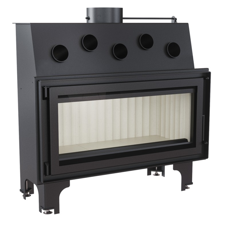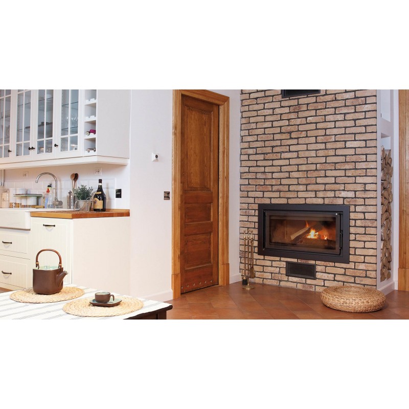 Wbudowany dolot powietrza fi 125, który zapewnia doprowadzenie świeżego powietrza do paleniska z zewnątrz budynku, co wpływa na lepsze spalanie.
