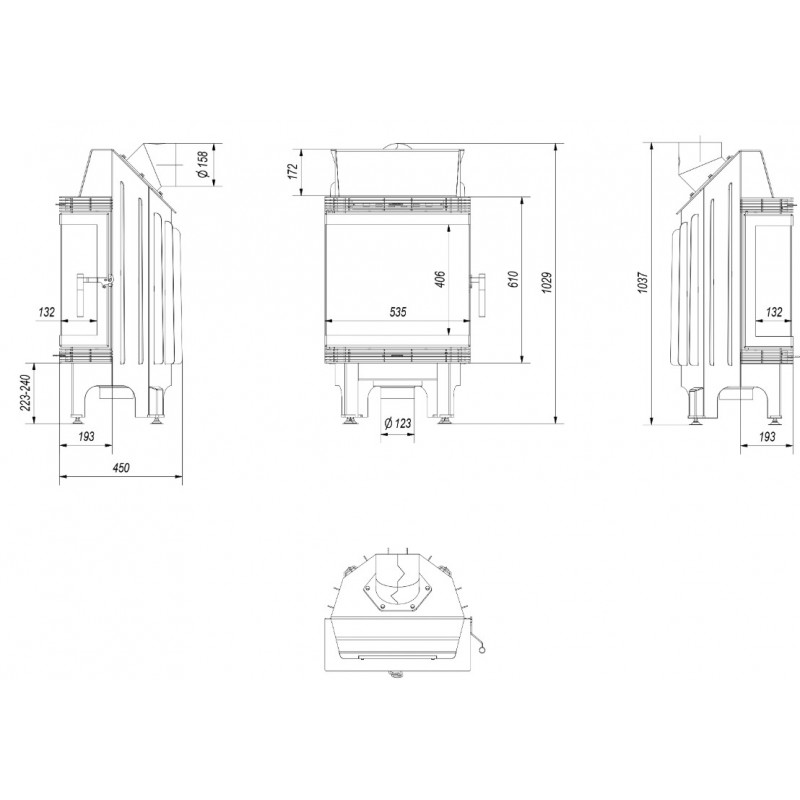 Wbudowany dolot powietrza fi 125, który zapewnia doprowadzenie świeżego powietrza do paleniska z zewnątrz budynku, co wpływa na lepsze spalanie.