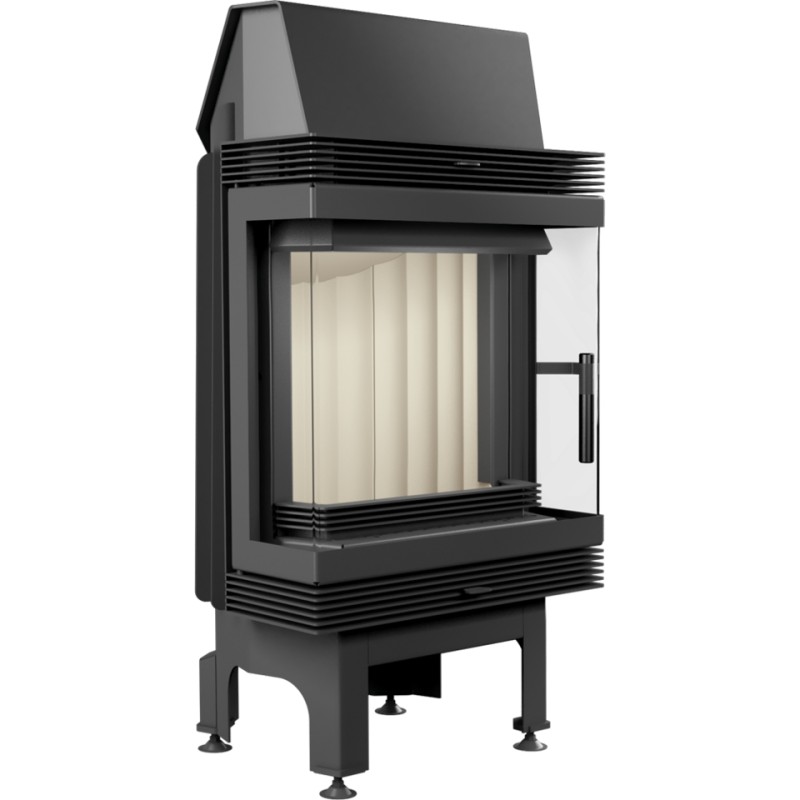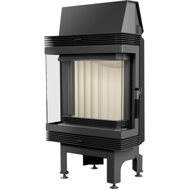 Wkład kominkowy z dwoma szybami zestawionymi ze sobą pod kątem prostym (szyby łączone bez szprosa).