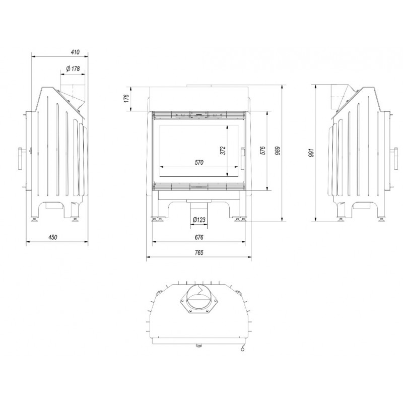 Wbudowany dolot powietrza fi 125, który zapewnia doprowadzenie świeżego powietrza do paleniska z zewnątrz budynku, co wpływa na lepsze spalanie.