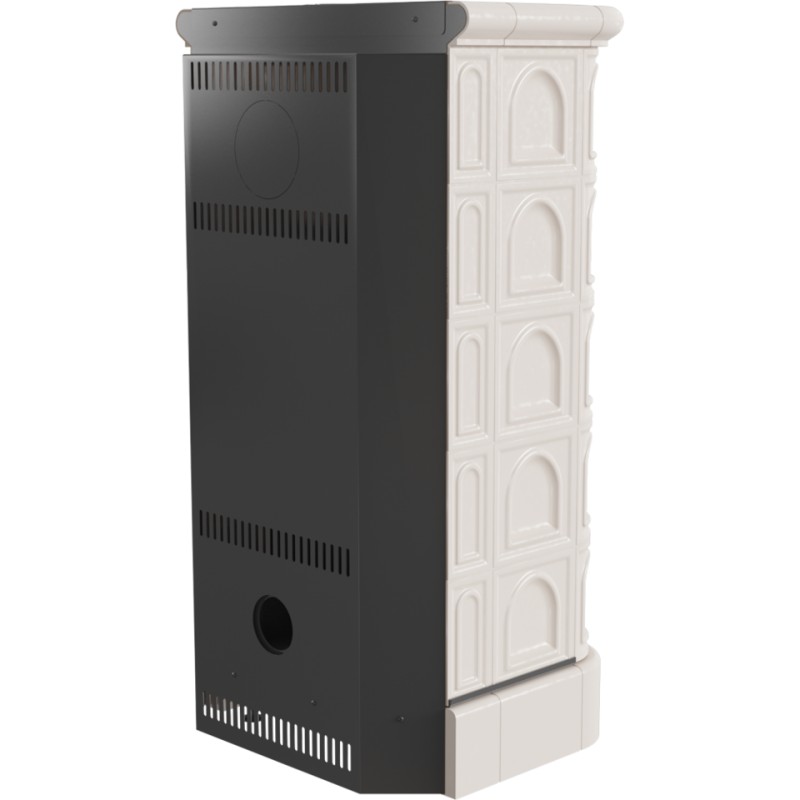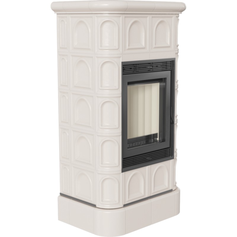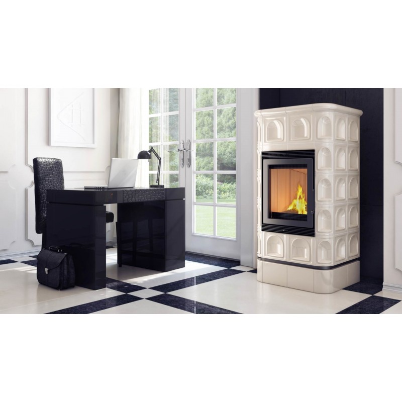 Wzornictwo nawiązujące do stylu retro - kafle z połyskiem. Obudowa wykonana z kafli wpływa na wydłużenie czasu oddawania ciepła, co stanowi dodatkowe źródło ogrzewania po wygaszeniu paleniska