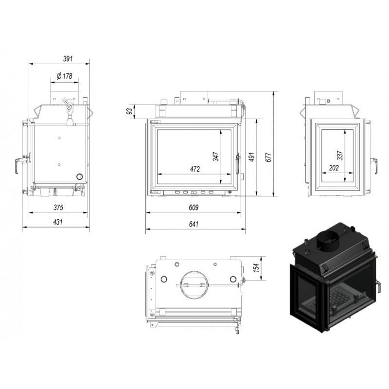 Klasyczny front wkładu wyposażony w ceramikę żaroodporna wytrzymującą temperaturę do 800°C.