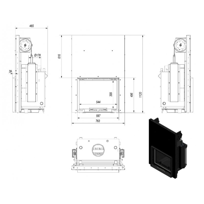 Podwójny system otwierania drzwi do góry (GILOTYNA) i do boku. Podnoszone i opuszczane drzwi ułatwiają załadunek drewna, a mechanizm umożliwiający boczne otwarcie pozwoli na sprawniejsze czyszczenie szyby.