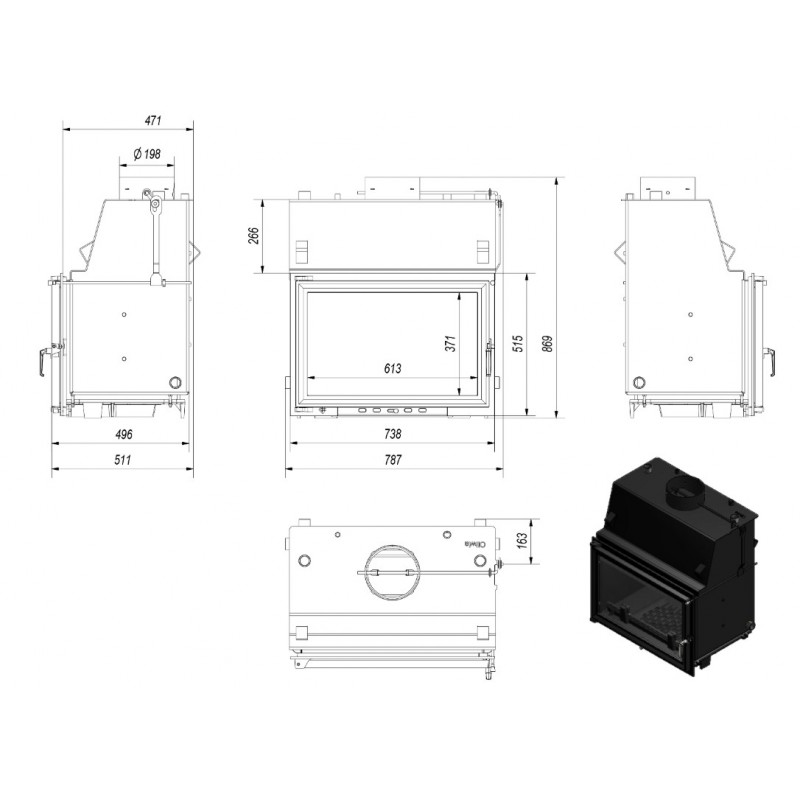 Klasyczny front wkładu wyposażony w ceramikę żaroodporna wytrzymującą temperaturę do 800°C.