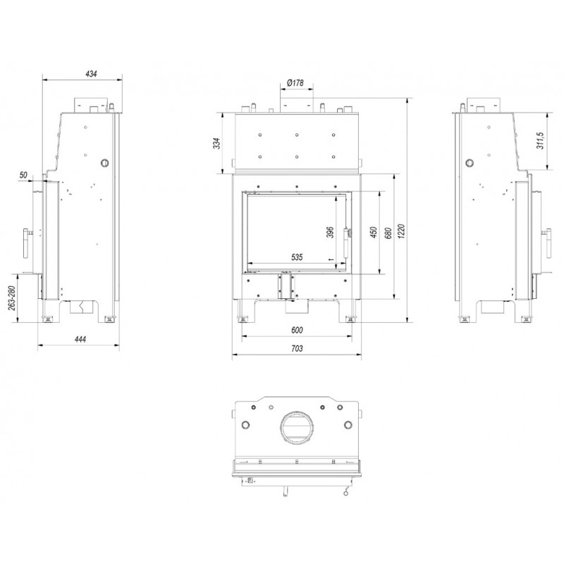 Stabilne i wytrzymałe na naprężenia drzwi kominka wykonane z zamkniętego profilu. Uszczelka drzwi znajduje się w wyprofilowanym kanale, co gwarantuje odpowiednie jej przyleganie oraz zapobiega ewentualnemu wypadnięciu podczas eksploatacji.
